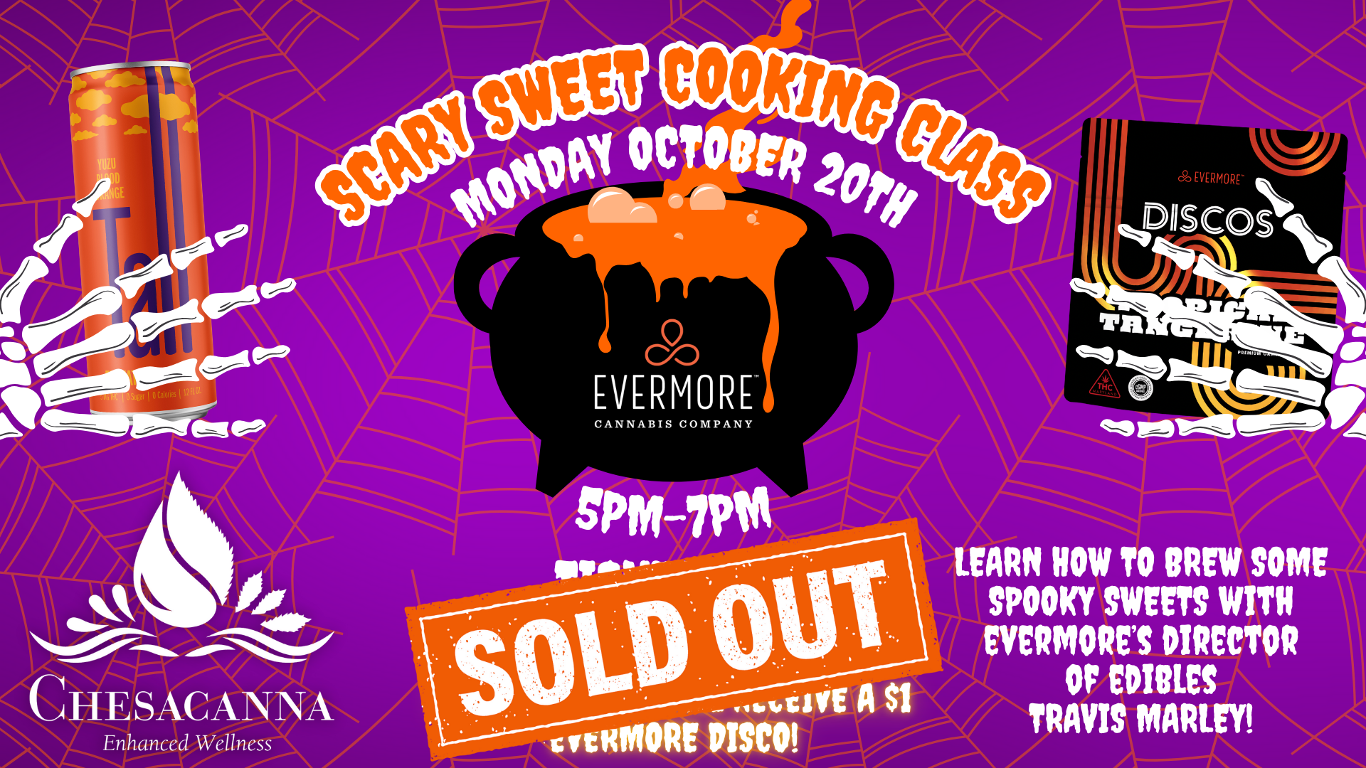 Join us on Monday October 20th, from 5-7pm, for the Scary Sweet Cooking Class with our friends at Evermore! The Director of Edibles at Evermore, Travis Marley, will be at Chesacanna, educating everyone on the basics of cooking with cannabis, creating some spooky good treats along the way! Tickets: $10, which includes $10 dispensary credit […]