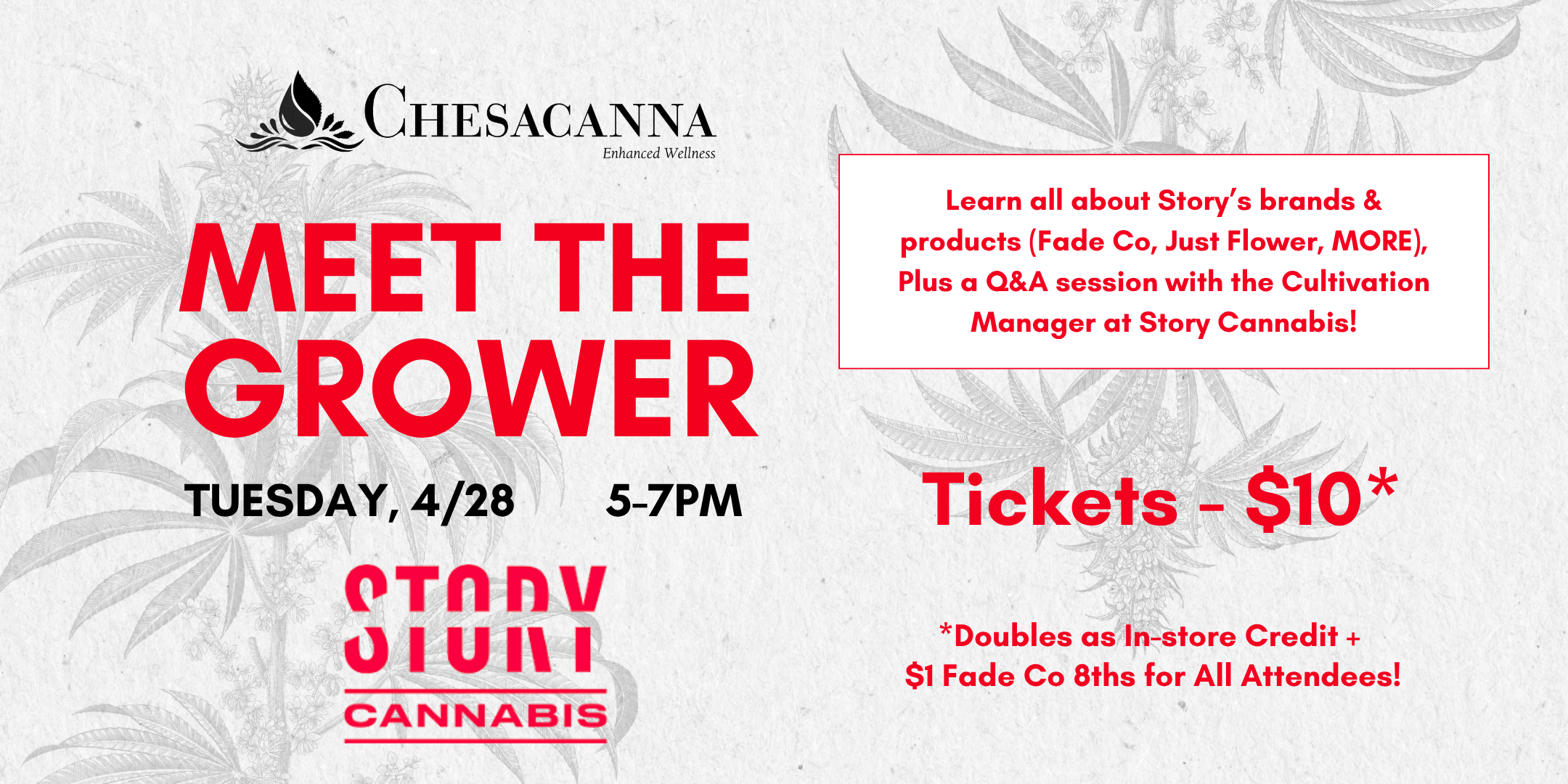 Learn all about Story’s brands & products (Fade Co, Just Flower, MORE) on Tuesday, April 28th from 5-7pm. Plus a Q&A session with the Cultivation Manager at Story Cannabis! Tickets: […]